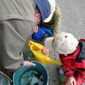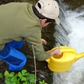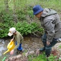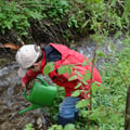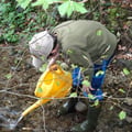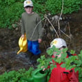 Wir dürfen im Nesselgrabenbach beim Aussetzen von Bachforellen